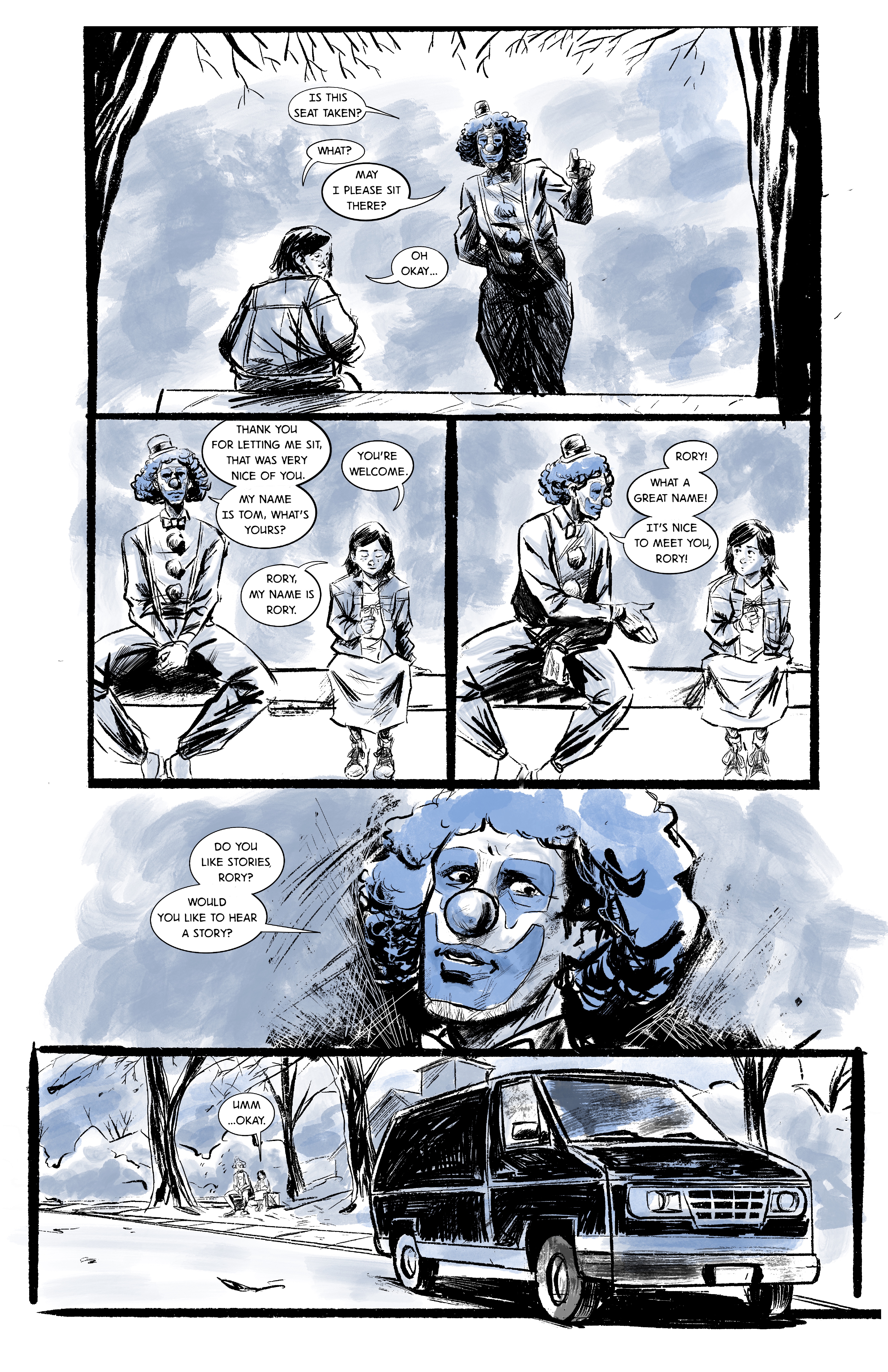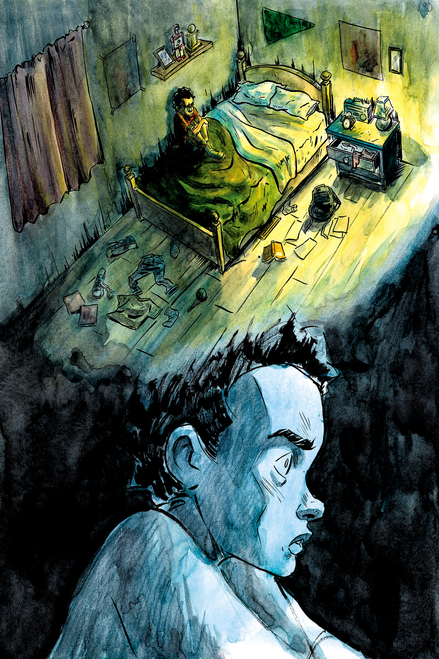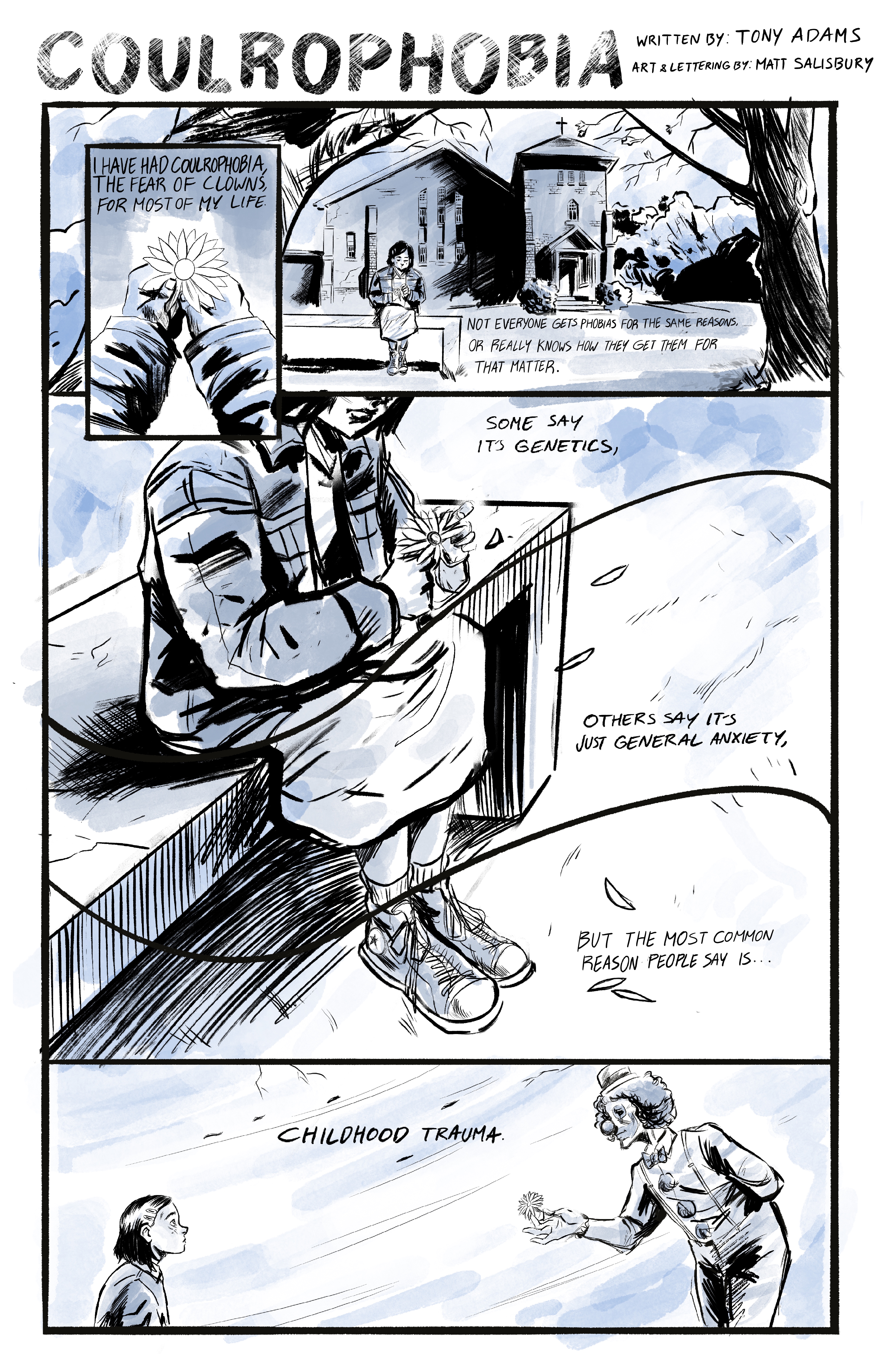 First published in “Scott Snyder Presents: Tales From The Cloakroom Vol 2.”, Couloraphobia is illustrated and lettered by Matt Salisbury. Adam’s story follows a female protagonist reliving a childhood trauma.